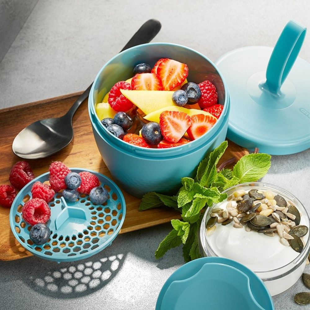 Φρέσκα φρούτα με γιαούρτι, σαλάτες με dressing ή φρούτα με ξηρούς καρπούς, μπορούν να μεταφερθούν χωριστά στο ίδιο φαγητοδοχείο χάρη στην πρακτικότητα και τον έξυπνο σχεδιασμό που παρέχει χώρο για όλα τα νόστιμα σνακ σας.