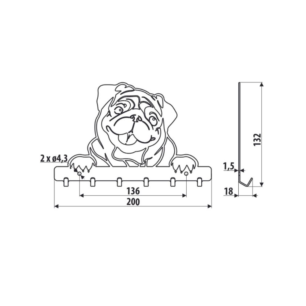 Χάρη στον μοντέρνο και ιδιαίτερο σχεδιασμό της, αποτελεί την ιδανική επιλογή κρεμάστρας για το χoλ, το σαλόνι, την κρεβατοκάμαρα ή και το παιδικό δωμάτιο. Η μεταλλική κρεμάστρα Pug δίνει την εντύπωση ότι πρόκειται για ένα διακοσμητικό τοίχου, διαθέτει όμως 6 θέσεις για τα κλειδιά, τα παλτό, τις τσάντες και τα υπόλοιπα αξεσουάρ σας.