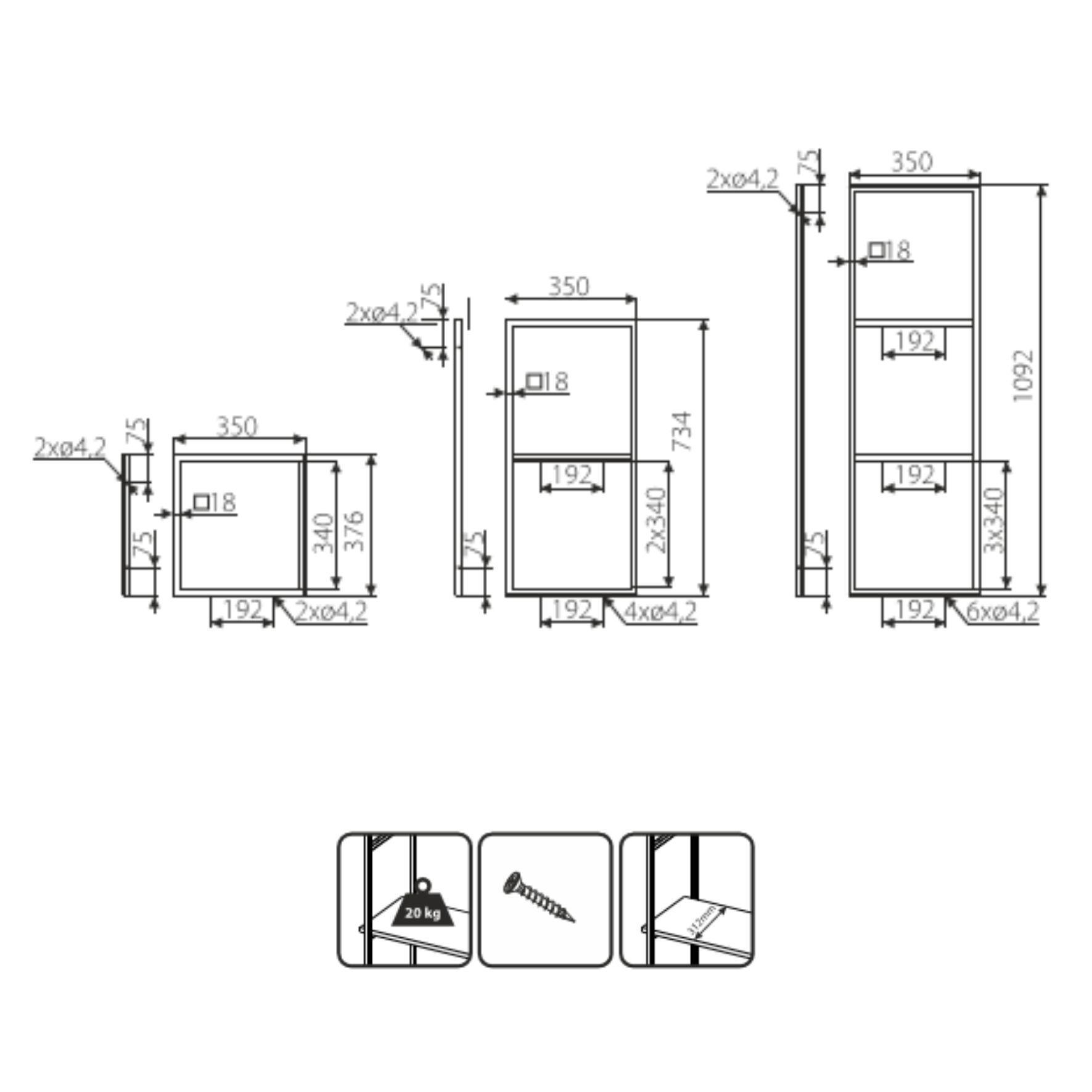 - Περιεχόμενα συσκευασίας: Οδηγίες, διαστασολόγια, εξαρτήματα στήριξης