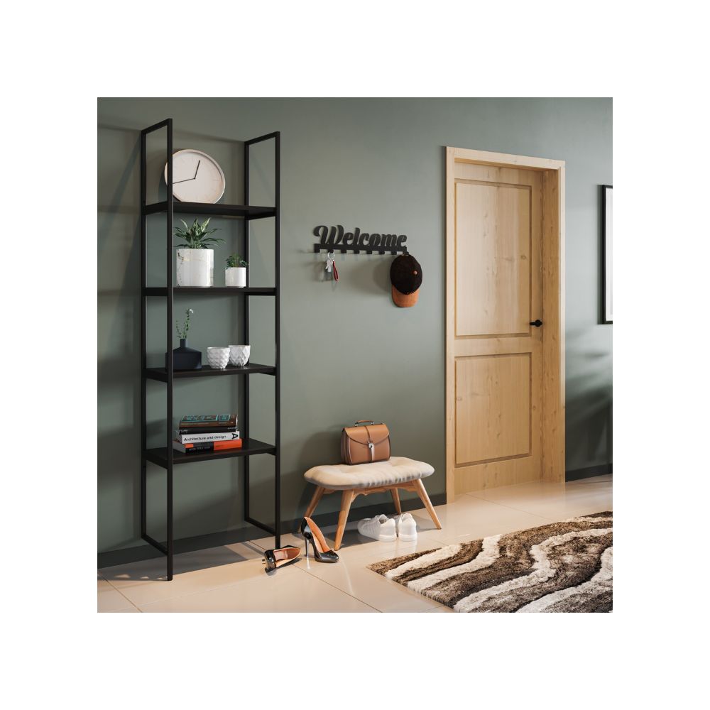 Κατασκευασμένη από χάλυβα με υψηλά πρότυπα ποιότητας και με ηλεκτροστατική βαφή πούδρας σε μαύρο ματ, εξασφαλίζει εξαιρετική αντοχή στον χρόνο, τη φθορά και τις συνθήκες υγρασίας. Η διάτρητη κατασκευή της επιτρέπει την εύκολη τοποθέτηση ραφιών, προσαρμόζοντας τη στήριξη στις ανάγκες κάθε χώρου.