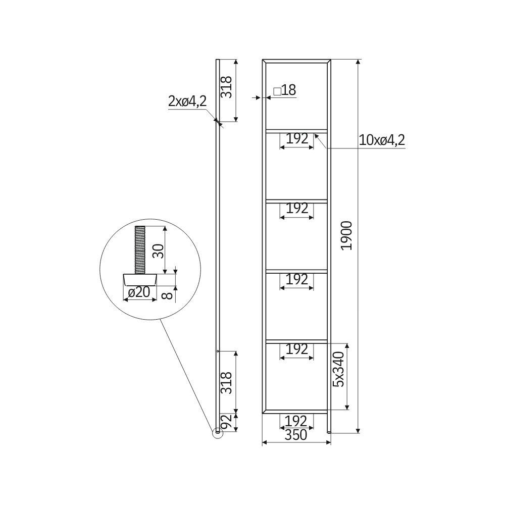 | Διαστάσεις | 37 × 10 × 192 cm |