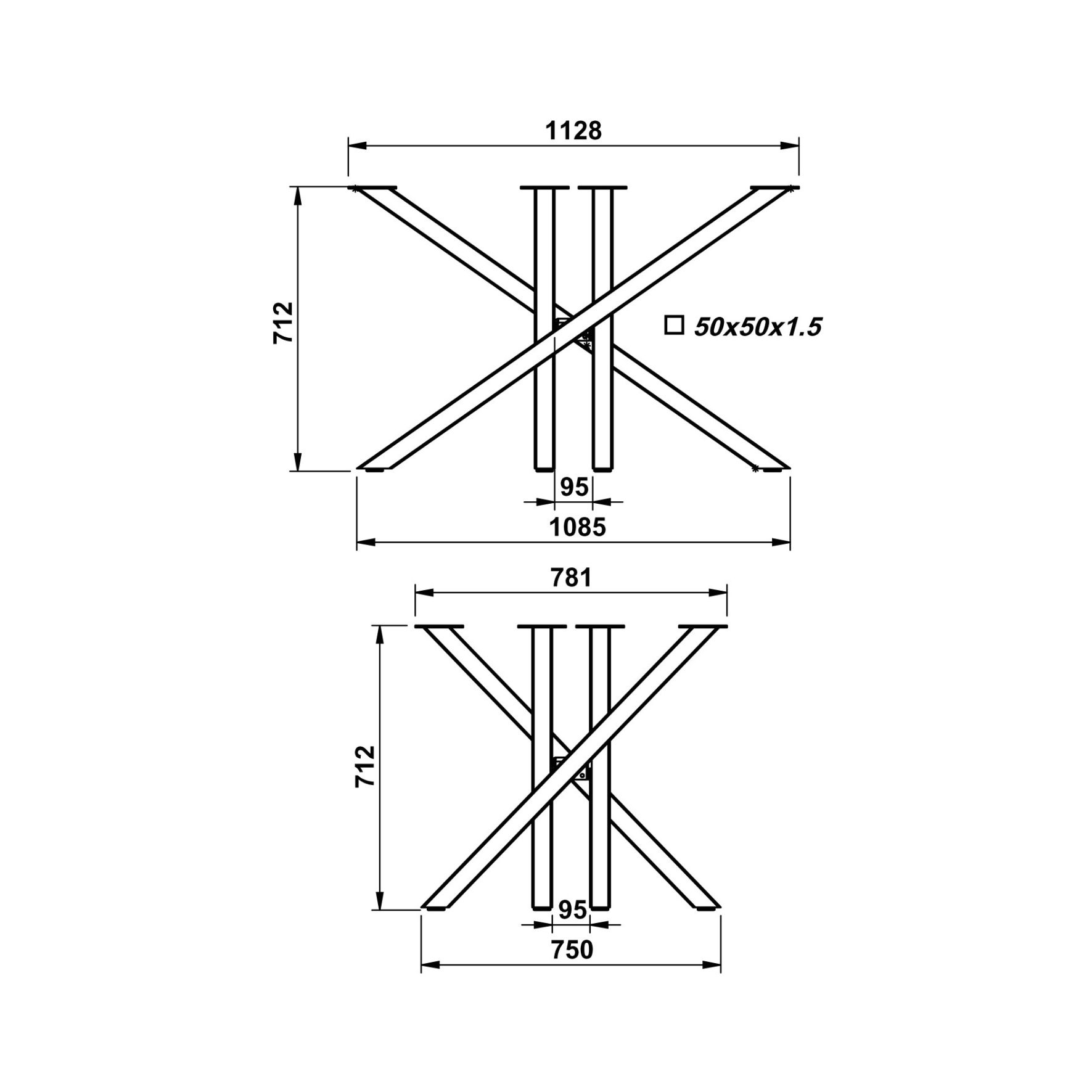 Βάση Τραπεζιού από Χάλυβα 112,8×78,1×71,0 cm – Μαύρο Ματ | Creative Home